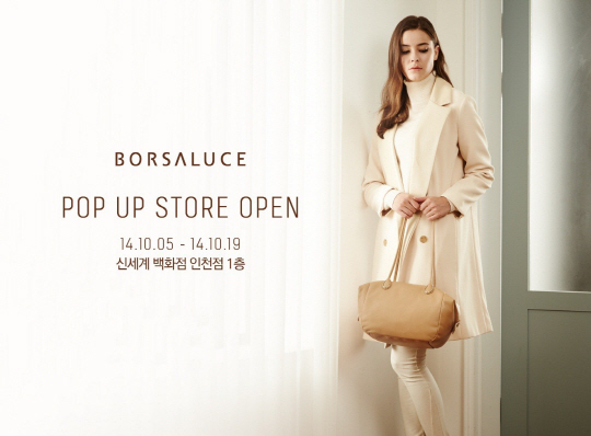 이탈리아 명품 가죽 핸드백 브랜드 '보르사루체(BORSALUCE)'가 오는 10월5일부터 19일까지 2주간 신세계 백화점 인천점에서 팝업스토어를 운영한다고 밝혔다.