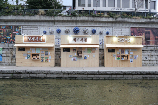 간판 제작과는 별도로 전시 프로모션을 통해 50년 이상 이어온 헌책방 거리의 축소판을 전시하고, 각 시대별로 헌책방에서만 만날 수 있는 책들을 소개하는 공간을 마련한다. 전시는 이달 19일까지 청계천 헌책방 거리 앞에 위치한 청계천로에 설치된다.