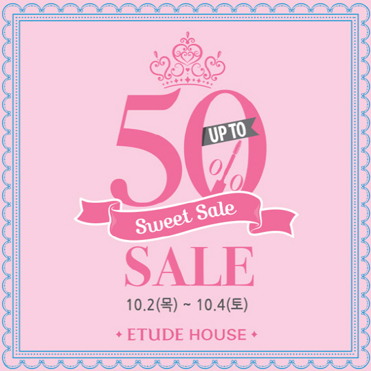 2일 에뛰드하우스는 가을철 필수 메이크업 제품을 포함한 최대 50% 할인 혜택의 '스윗 세일' 을 실시한다고 밝혔다.