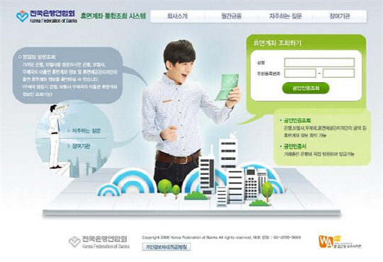 휴면계좌통합조회시스템 이란 은행이나 우체국, 보험사 등 금융기관에서 일정기간 거래가 없어 정지된 휴면계좌에 방치된 예금 또는 보험금을 가입자에게 조회해 찾아주는 서비스를 말한다.