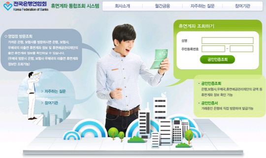 휴면계좌통합조회시스템 이란 은행이나 우체국, 보험사 등 금융기관에서 일정기간 거래가 없어 정지된 휴면계좌에 방치된 예금 또는 보험금을 가입자에게 조회해 찾아주는 서비스를 말한다.