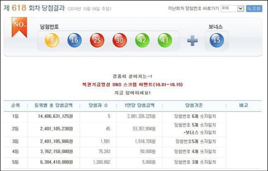 618회 로또 당첨번호 공개, 1등 5명...당첨 금액 무려 '깜짝' |