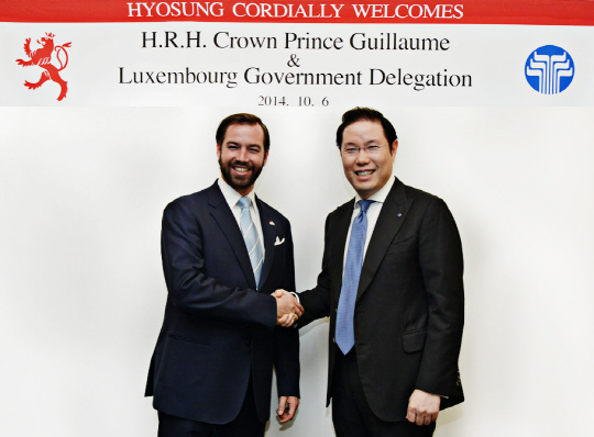 6일 저녁 서울시 서초구 올림픽대로의 세빛섬에서 효성 조현상 부사장(오른쪽)이 이날 방한한 기욤 장 조세프 마리 왕세자(왼쪽) 등 룩셈부르크 경제 사절단을 만나 경제협력방안 등에 대해 논의했다.
