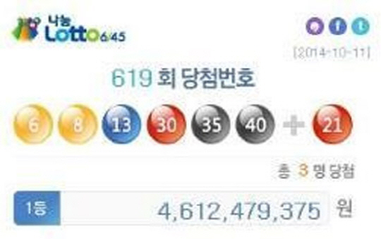 로또619회 당첨번호를 모두 맞춘 1등 당첨자는 총 3명이다. 1인당 46억 1247만 9375원의 금액을 받게 된다.