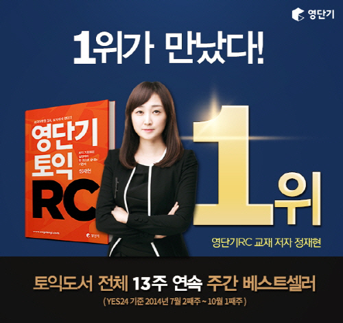 영단기 이상제 본부장은 "'영단기 토익RC'가 13주 연속 베스트셀러 1위에 선정된 요인에는 수험생들의 토익 고민을 하루라도 빨리 끝낼 수 있도록 노력한 영단기의 끊임없는 토익 트렌드 분석이 있었기에 가능했다"며 "실제 토익RC의 감을 잡고 싶은 수험생, 단기간에 점수를 올려야 하는 수험생, 토익 RC를 마스터하고 싶은 학습자들 모두의 고민을 '영단기 토익RC' 한 권에 담았기 때문에, 스스로의 취약점을 파악할 수 있고 기존 기본서와는 차원이 다른 전략적 집중 학습이 가능하다"고 말했다.