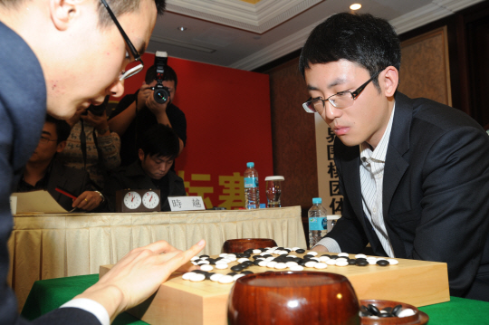 ◇전기대회에서 스웨 9단(오른쪽)이 박정환 9단을 꺾고 중국의 세 번째 우승을 확정지었다.