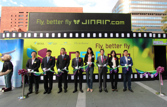13일 진에어에 따르면 서울시, 인천국제공항공사, 한국방문위원회의 공동 후원으로 진행되는 이번 캠페인에서 진에어는 단편 영화 '위시 유 워 히어(Wish you were here)'를 이동식 영화관을 통해 후쿠오카 시민들에게 선보이고 방문객들을 대상으로 포토월 이벤트 등을 진행했다. 행사 첫날에는 조현민 마케팅 본부장(전무)과 한경아 한국방문위원회 사무국장, 류민석 대한민국 총영사관 영사, 김성환 코트라(KOTRA) 후쿠오카 무역관장, 이시와 히데히토 후쿠오카시 경제관광문화국 과장 등이 참석한 가운데 행사 시작을 알리는 테이프 커팅식도 진행됐다.