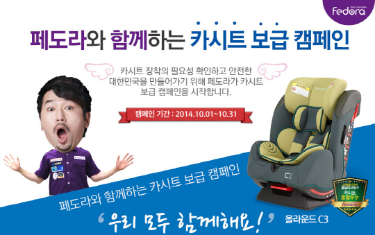 페도라 카시트 캠페인은 선진국 대비 저조한 국내 카시트 장착률을 높이기 위해 마련했다. 캠페인을 통해 페도라 올라운드 C3 카시트 및 연령별 카시트 사용법을 자세히 알 수 있다.