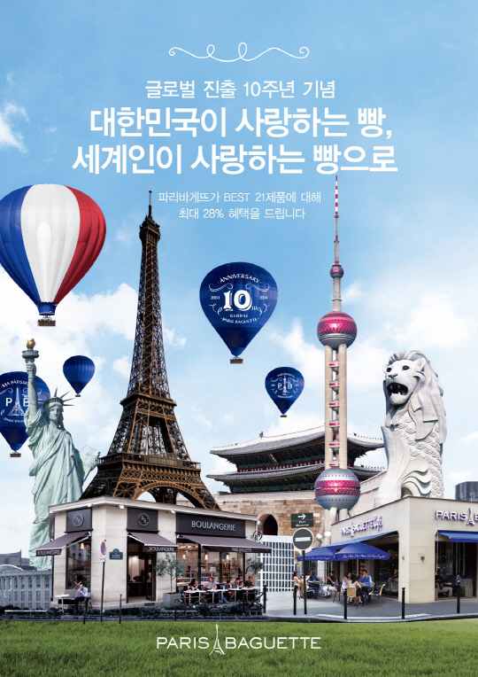 1986년 창립해 우리나라에 유럽풍 문화를 소개, 발전시켜 온 ㈜파리크라상은 1997년 파리바게뜨로 국내 베이커리 업계 1위에 오르며 대한민국 대표 베이커리 브랜드로 성장했다. 2004년부터는 중국과 미국 등 글로벌 시장에 진출해 잇달아 성공을 거두고, 중국?미국?베트남?싱가포르 등에 이어 브랜드의 지향점이자 바게트의 나라인 프랑스 파리에 진출하면서 글로벌 브랜드로서의 파리바게뜨로 자리매김한 지 10주년을 맞이했다.