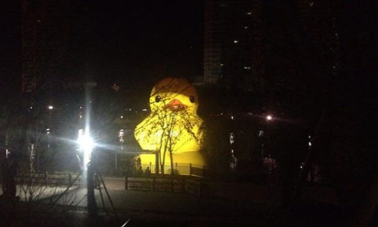 이에 '러버덕' 프로젝트 페이스북 계정에는 "뒤에서 몰래 찍은 사진 한장 올려봅니다. 여기는 서울입니다!"라는 글을 게재하며 이벤트의 시작을 알렸다.