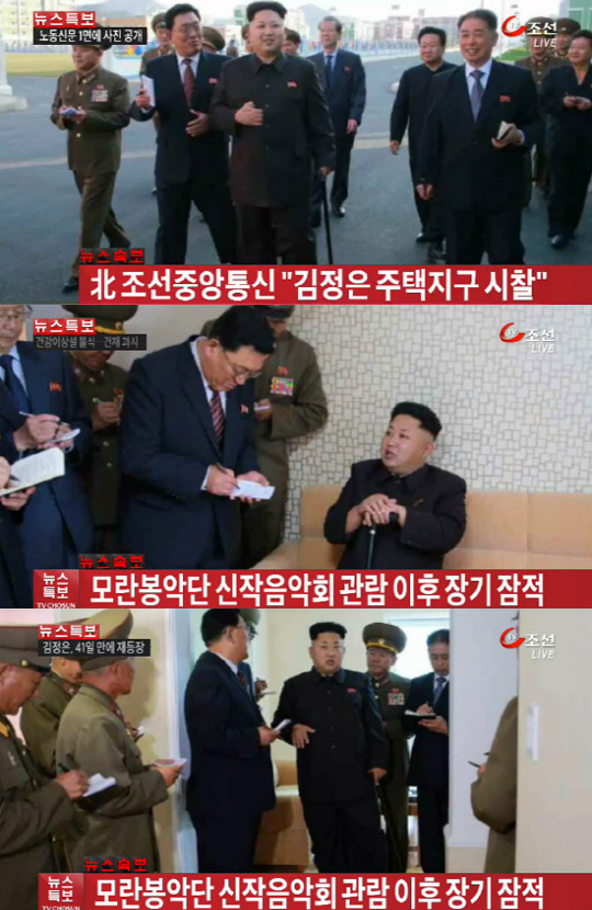 김정은 공개석상 등장, 지팡이 짚고 나왔네", "