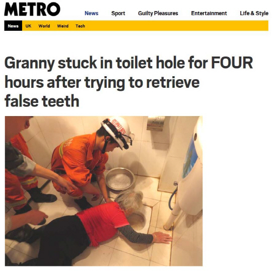 중국에서 80대 노인이 변기에 팔이 끼었다가 4시간만에 구조됐다.