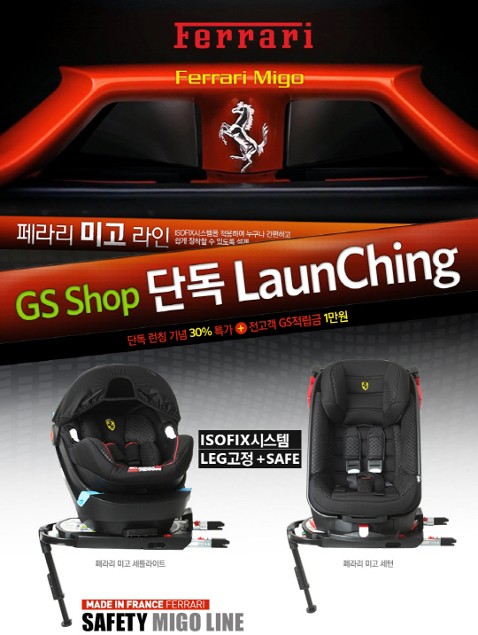 유럽 최대 카시트 전문기업 팀텍스사의 페라리가 신생아카시트 '미고 세틀라이트(Migo Satellite)'와 유아용카시트 '미고 세턴(Migo Saturn)'을 출시하고 GS샵에서만 30% 할인판매를 진행한다.