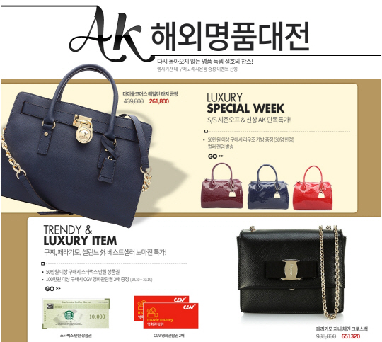 AK몰, '해외명품 대전'에서 최고 30% 할인판매