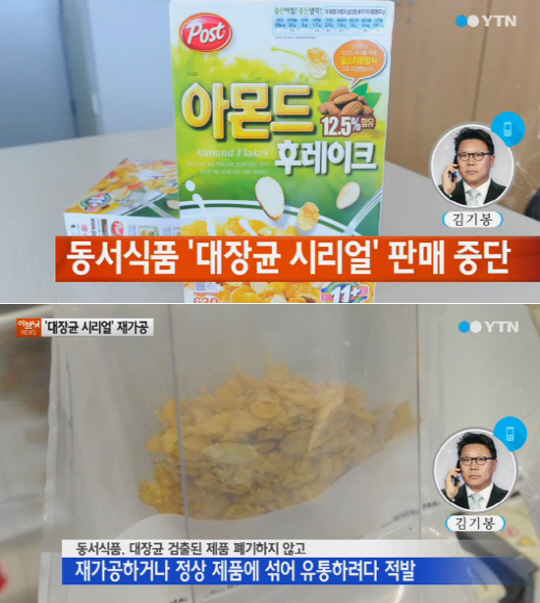 이 같은 사실이 알려지자 동서식품 관계자는 "대장균 같은 경우는 생활 도처에 엄청 많이 있다. 그런 것들에 (시리얼이) 오염되면 이건 버리기엔 너무 많다. 거기서 재가공이 들어간다"고 해명해 소비자들을 더욱 당황하게 만들었다.