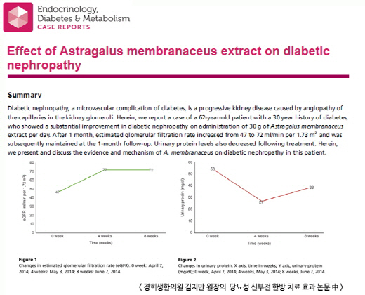 대표적인 당뇨 합병증 중 하나인 당뇨병성 신부전 치료에 전통 한약을 이용한 치료가 효과가 있다는 것을 입증한 논문이 유럽 내분비 의학 전문 학술지에 등재됐다.