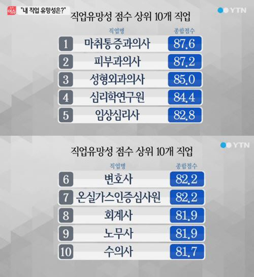 건강·외모 관련 직업 유망, 피부과-성형외과 등 상위권 차지..."내 직업은 몇 위?"