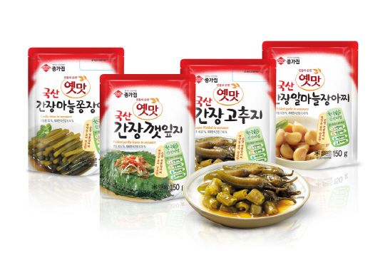 이번 신제품은 재래 한식간장으로 담아 깊고 깔끔한 맛이 일품인 '옛맛 국산 간장 깻잎 장아찌', '옛맛 국산 간장 알마늘 장아찌', '옛맛 국산 간장 마늘쫑 장아찌', '옛맛 국산 간장 고추 장아찌' 등 4종으로 구성됐다.