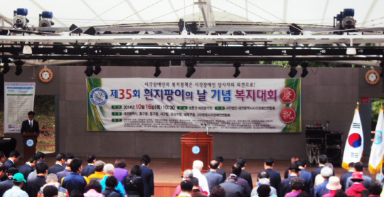 행사는 시각장애인 650명을 포함해 총 800여 명이 참석한 가운데 흰지팡이 헌장낭독, 시상 및 표창, 흰지팡이 전달식, 노래자랑 순으로 진행됐다.