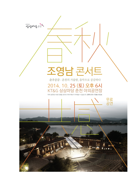 KT&G는 '조영남 콘서트 춘추공감(春秋共感)'은 지난 4월 개관한 KT&G 상상마당 춘천에 지속적인 관심을 보여준 지역민들에게 보답하고자 마련되었다고 밝혔다. '춘천의 가을밤, 음악으로 공감하다'라는 주제로 다양한 연령대 팬층을 확보한 조영남의 단독 콘서트를 펼쳐진다.