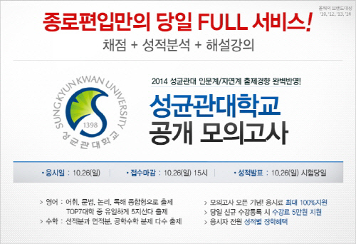 2014 성균관대편입 인문계/자연계 출제경향을 완벽 반영했으며 시험 본 당일에는 채점과 성적표, 성적분석 + 해설강의가 무료로 제공된다.