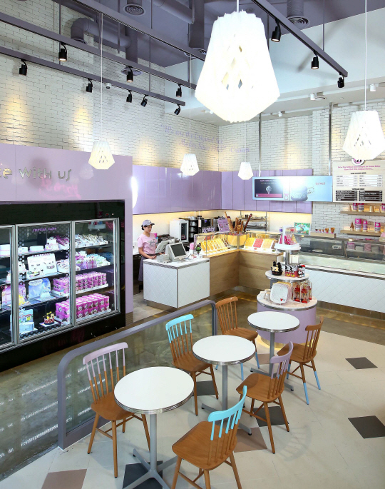 배스킨라빈스를 상징하는 핑크 컬러의 네온 사인과 레트로풍 이미지, 체크타일 등 발랄하고 톡톡 튀는 분위기의 인테리어로 보다 아늑하고 편안한 공간을 제공하는데 초점을 맞췄다.