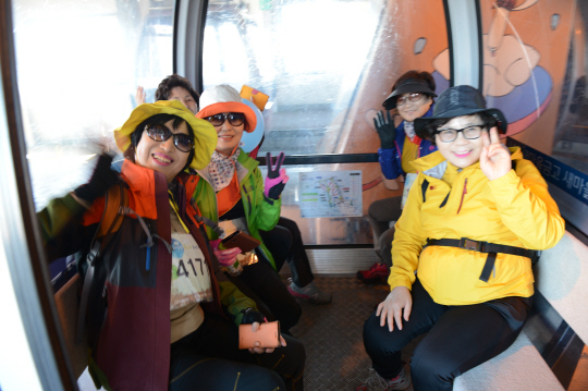 가족코스 참가자는 곤돌라로 마운틴탑까지 오른 후 본격 트레킹에 나선다. 정선=김형우 여행전문 기자
