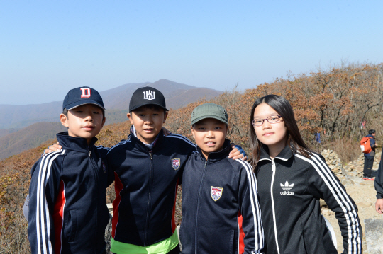 트레킹 반창회 가졌어요. 경기도 오산 고현초등학교 조윤신, 이태우, 안대경, 정가영 4총사가 하이원하늘길트레킹대회에 함께 참가했다.. 정선=김형우 여행전문 기자
