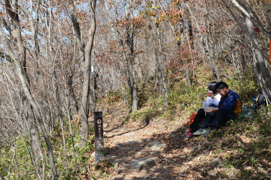 우리 커플은 잠시 쉬었다 갑니다. 정선=김형우 여행전문 기자