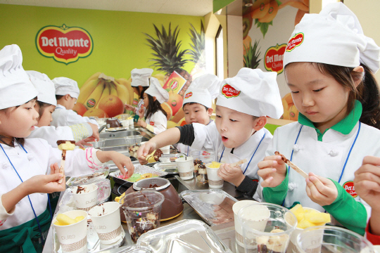 지난 18일 서울시 송파구의 헤럴드 영어마을에서 초등학교 1~3학년 성장기 자녀가 있는 가족을 대상으로 '키즈 영어 쿠킹클래스', '명랑 운동회' 등과 같은 체험 프로그램으로 진행됐다. 키즈 영어 쿠킹클래스는 전문강사와 함께 델몬트 바나나와 골드파인을 넣은 '과일 퐁듀'를 아이들이 직접 만들며 즐거운 시간을 보냈다. 수업 전체가 영어로 진행되고 쿠킹과 과일 영양소에 대한 영어 교육 활동이 더해지면서 자녀 교육에 관심이 높은 학부모들에게 큰 호응을 얻었다. 델몬트 명랑 운동회는 온 가족이 참여해 '풍선 불어 기둥 세우기', '부모님과 함께하는 릴레이 계주' 등 팀 대항 경합을 펼쳤다.