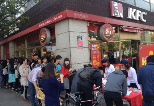 KFC(www.kfckorea.com)가 지난 17~18일 양일 간 신메뉴 '징거더블다운킹' 출시를 기념해 약 800명의 고객을 대상으로 시식 이벤트를 성황리에 진행했다.