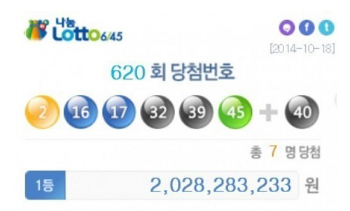 로또 620회 당첨번호는 2, 16, 17, 32, 39, 45 총 6개며 보너스 번호는 40이다.