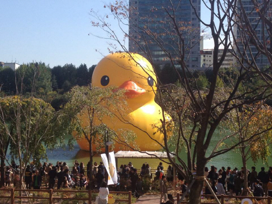 러버덕 프로젝트 서울은 지난 14일부터 내달 14일까지 한 달 간 서울 송파구 석촌 호수에서 진행된다. <스포츠조선닷컴>