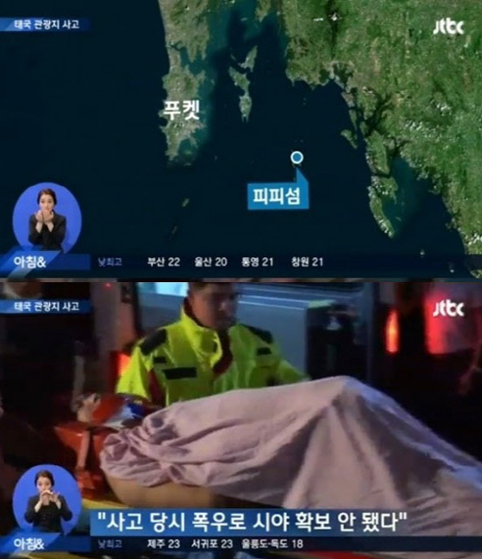 푸껫 섬의 유명 관광지 피피 섬을 방문하다 돌아오던 쾌속정은 당시 폭우로 시야가 잘 확보되지 않았다고 외신들은 전했다.