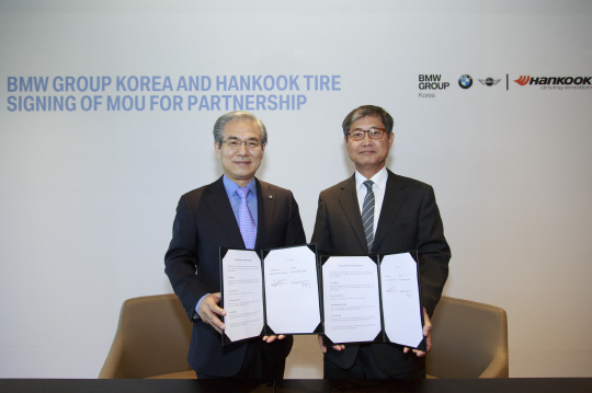 한국타이어는 BMW 코리아와 인천 영종도 BMW 드라이빙 센터에 타이어 독점공급을 위한 양해각서(MOU)를 지난 17일 체결했다고 밝혔다.