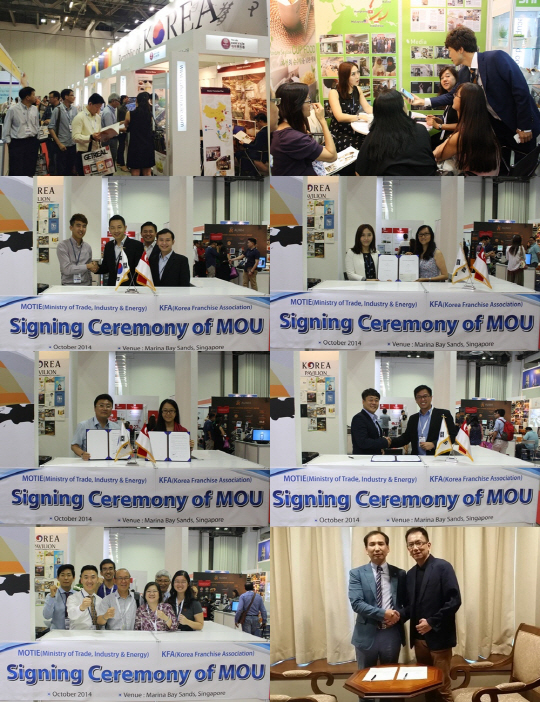 (사)한국프랜차이즈산업협회(회장 조동민)가 21일 산업통상자원부(장관 윤상직)의 프랜차이즈 해외 진출 지원사업의 일환으로 16일부터 18일까지 싱가폴 마리나베이샌즈(Marina Bay Sands) 컨벤션센터에서 개최된 2014싱가폴프랜차이즈박람회(Franchising & Licensing Asia 2014)에 참가, 국내 프랜차이즈 기업들의 현지 진출을 적극 지원했다고 밝혔다.