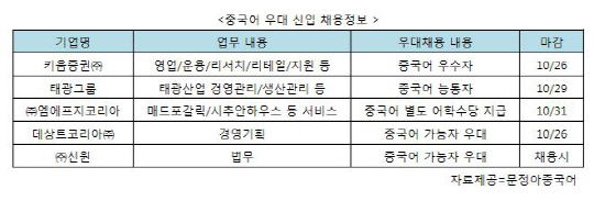 대기업 하반기 공채 시즌이 마무리 돼가고 있는 요즘 각 기업의 서류전형 및 인적성검사 결과 발표가 이어지고 있다. 하지만 지원한 기업에서 고배를 마셨더라도 좌절하긴 이르다. 아직 지원할 수 있는 기업이 남았고 특히 중국어 가능자라면 우대채용 될 기회가 있기 때문이다.