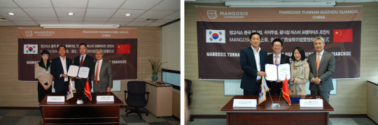 프리미엄 디저트 카페 망고식스가 중국 현지 기업 2개사와 후난성 등 6개성 사업에 대한 2건의 마스터프랜차이즈(MF) 협약식을 체결했다.