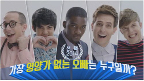 대한민국의 대표 오빠들을 뒤로 하고 세계 각국의 대표 오빠들이 펼치는 '2014 가장 영양가 없는 오빠 TOP5' 투표 이벤트는 12월3일까지 6주간 진행될 예정. 가장 영양가 없는 오빠로 뽑힌 최후의 1인은 마트 시음행사 도우미 미션을 수행해야 한다. 투표에 참여하면 추첨을 통해 그릭요거트의 본고장 그리스여행권을 비롯 다양한 경품들이 주어진다. 송진현 기자 jhsong@sportschosun.com