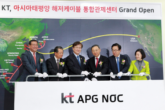 KT가 21일 부산 해운대구 송정에 위치한 KT부산국제센터에서 국제 해저통신망 통합관제센터인 'APG NOC'(Asia Pacific Gateway Network Operation Center) 개소식을 했다.
