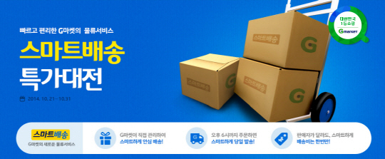 국내 최대 온라인쇼핑사이트 G마켓(www.gmarket.co.kr)이 10월 31일까지 기저귀, 라면, 세제 등 주요 생필품을 할인 판매하면서 배송비를 절약 할 수 있도록 묶음배송 해주는 '스마트배송 특가대전'을 진행한다.