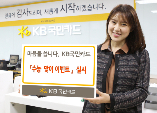 KB국민카드가 2015학년도 대학수학능력시험을 앞두고 대학 등록금 지원, 패밀리레스토랑 할인 등 수능 수험생과 수험생 가족을 위한 '수능 맞이 이벤트'를 다양하게 펼친다.