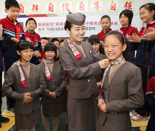 아시아나항공은 쑤저우시에 위치한 완핑학교 분교에 멀티미디어세트10개, 칠판 10개, 피아노 1대 등을 전달하고, 승무원을 꿈꾸는 학생을 대상으로 직업특강을 실시했다.
