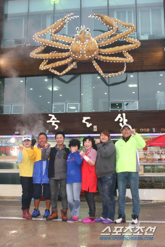 | ◇죽도산대게 이진영 대표(왼쪽에서 세번째)와 직원들이 함께 모여 고객에게 지역의 문화를 흠뻑 느낄 수 있도록 최상의 맛과 서비스를 선사할 것을 다짐하며 파이팅을 외치고 있다. |