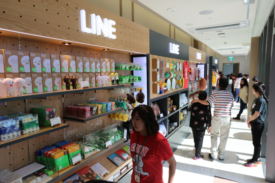 모바일 메신저 라인(http://line.me/ko/)이 24일 라인 캐릭터 관련 상품을 판매하는 '라인 프렌즈 스토어(LINE FRIENDS STORE)'를 제주도 신라면세점에 오픈했다고 밝혔다. 올해 4월 서울 소공동 롯데백화점에 상설 매장을 오픈한 이후 정규 매장으로는 국내에 두번째다.