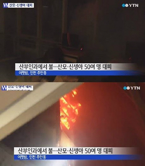 화재로 산모와 신생아 등 56명이 대피했으며, 인명피해는 없는 것으로 전해졌다.