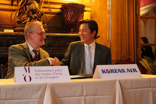대한항공이 26일 프랑스 파리의 오르세 박물관의 한국어 지원 서비스에 나선다고 밝혔다. 대한항공에 따르면 24일 오후 5시(현지시각) 프랑스 파리의 오르세 박물관 살롱 프레지던트(Le Salon du President)에서 김용철 대한항공 구주지역본부장, 기 코즈발(Guy Cogeval) 오르세 박물관장 등이 참석한 가운데 한국어 안내 서비스 후원을 위한 서명식을 가졌다.