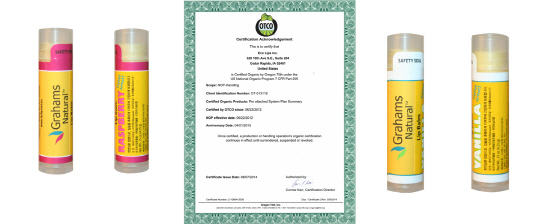내츄럴 오가닉 립밤이 99% 유기농 원료를 사용해 '미국 유기농 인증 기관(OTCO)'인 '오레곤 틸스(Oregon Tilth)'에서 인증서를 획득했다. 오레곤 틸스의 인증서는 농약이나 합성인공비료 등을 사용하지 않고 최소 3년 이상의 유기농 생산을 지속했을 때 취득 가능하다.