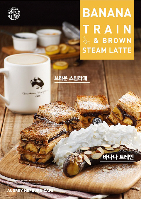 오드리헵번 카페(대표 김석훈)가 27일 겨울 신메뉴를 출시한다고 밝혔다. 따뜻한 우유에 에스프레소 더블 샷과 커피 향이 가득 배인 브라운 스팀이 가득 들어간 브라운 스팀 라떼와 고소한 호밀 빵 사이에 달콤한 생 바바나와 초코 소스, 그리고 담백한 생크림으로 장식된 '바나나 트레인 브레드'다.