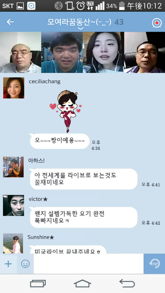 페이스채팅은 다른 메신저 서비스와 같이 채팅의 기본 기능을 사용하면서 동시에 화상대화를 할 수 있는 게 특징. 실시간으로 최대 4인이 동시에 얼굴을 보며 음성대화 및 채팅이 가능하고, 화상대화를 하지 않는 사람들은 4인의 영상통화를 보고 들으며 채팅창에서 함께 대화를 나눌 수 있다. 물론 무료 앱이므로 별도의 통신료가 들지 않는다.